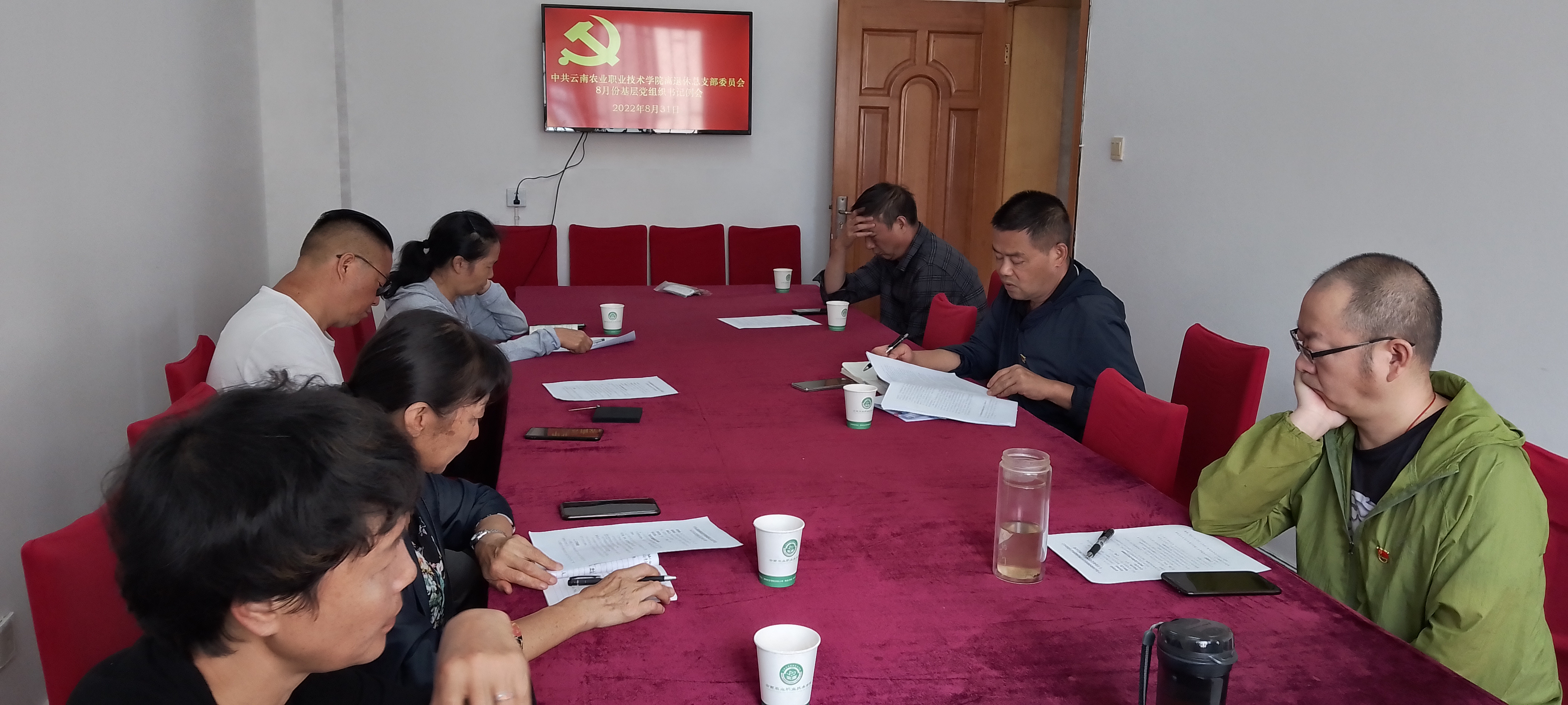 会议通报《中共云南省委教育工委办公室关于发展党员专项检查的反馈意见》、《中共云南省委教育工委关于2022年上半年“智慧党建”大数据分析预警信息的通报》、2022年高校基层党支部书记网络培训、“构建高量党建工作体系,引领推动高校高质量发展”专题网络培训学习情况等事宜。