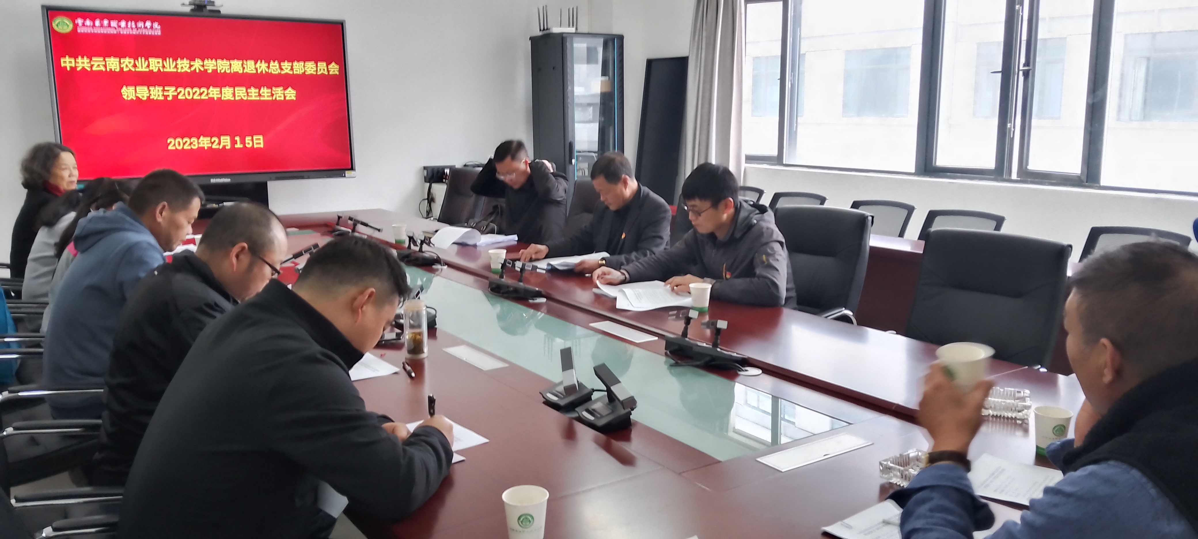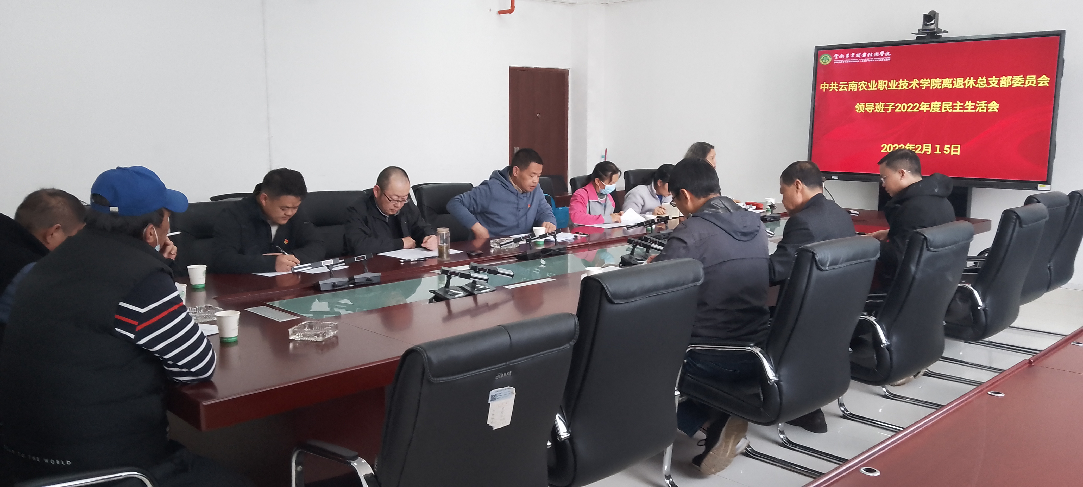 2023年2月15日下午,根据学院党委统一安排部署,中共云南农业职业技术学院离退休总支部委员会领导班子2022年度民主生活会在茭菱校区A2幢826会议室召开。学院党委第六督导组领导到会指导督导。党总支班子全体成员参加会议,离退休党总支组织员、离退休第四党支部书记、在职党员列席会议。按照会议议程,党总支书记凌军同志主持会议并作总结讲话。