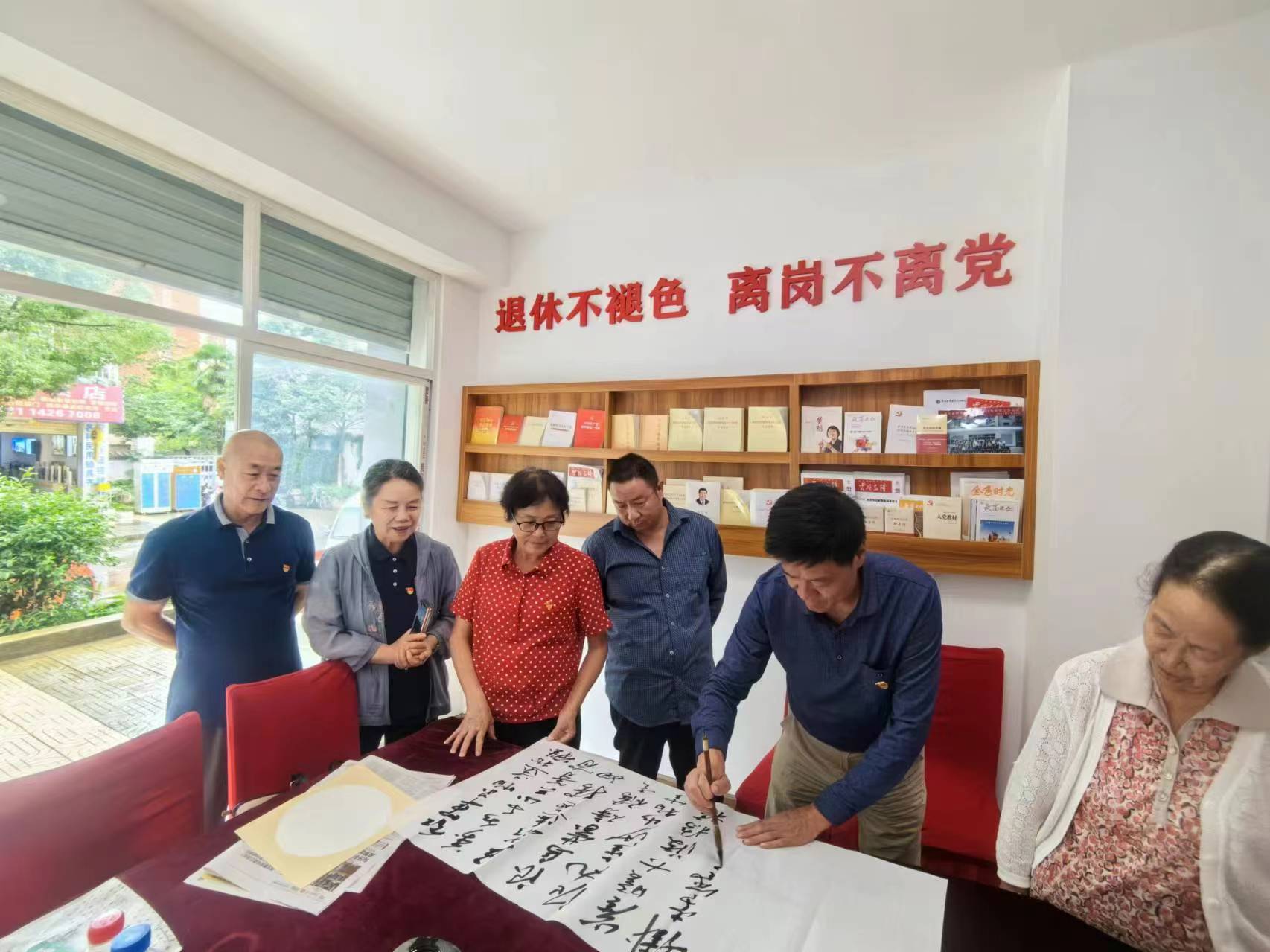 离退休党总支第四支部党员蔡永生同志现场展示书法创作