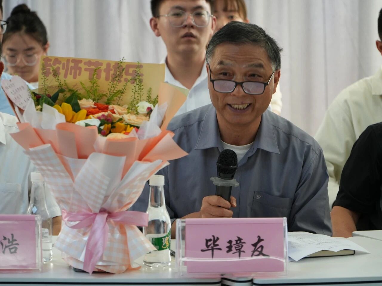 离退休教师代表俞浩、银龄教师代表毕璋友、教师代表简宗辉、黄子瑜、刘琦琳、杨净云、杨多等先后交流发言。他们结合自身的教学经历,分享了育人的心得和体会,表达了对教育事业的热爱和忠诚。与会人员还在座谈会上进行了充分的交流,大家畅所欲言,凝聚起“传承教育薪火、共筑育人根基”的共识,为学校后续教育教学工作的提质增效注入新动力。
